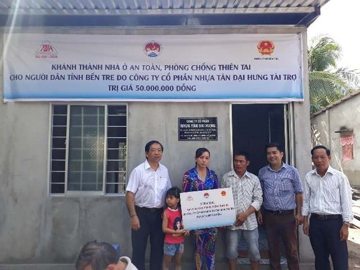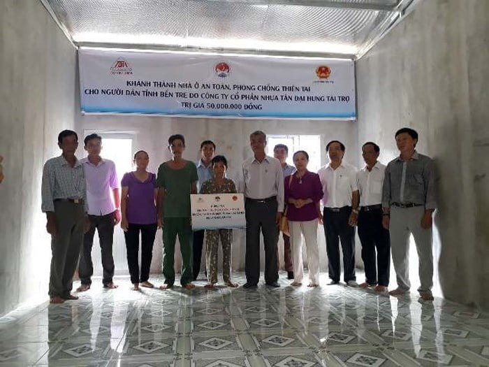 (SME-BRVT) Đây là 5 căn nhà đầu tiên trên tổng số 40 căn nhà do công ty CP nhựa Tân Đại Hưng tài trợ cho đồng bào nghèo vùng thiên tai bão lũ hai tỉnh Bến Tre và Cà Mau, dưới sự bảo trợ của Tổng cục PCTT (Bộ NN&PTNT), Busadco là đơn vị thực hiện.