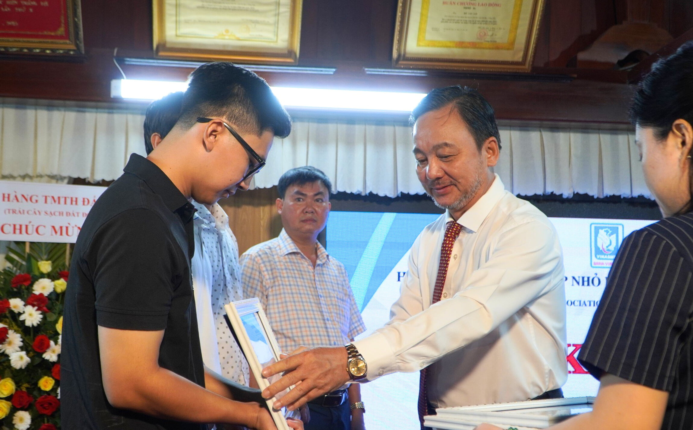 Lãnh đạo Hiệp hội DNNVV tỉnh, huyện Đất Đỏ trao Giấy chứng nhận và tặng hoa chúc mừng các Hội viên mới.