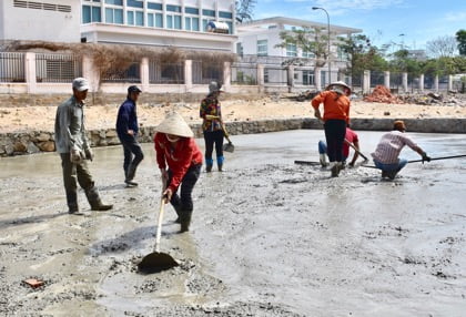 Công nhân thi công hạng mục bãi đỗ xe tại Dự án Văn phòng kết hợp chung cư Ruby Tower do Công ty CP DIC số 4 – Công ty con của DIC Corp – làm chủ đầu tư.