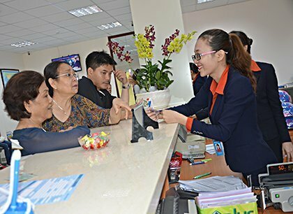 Khách hàng giao dịch tại Sacombank Nguyễn An Ninh.