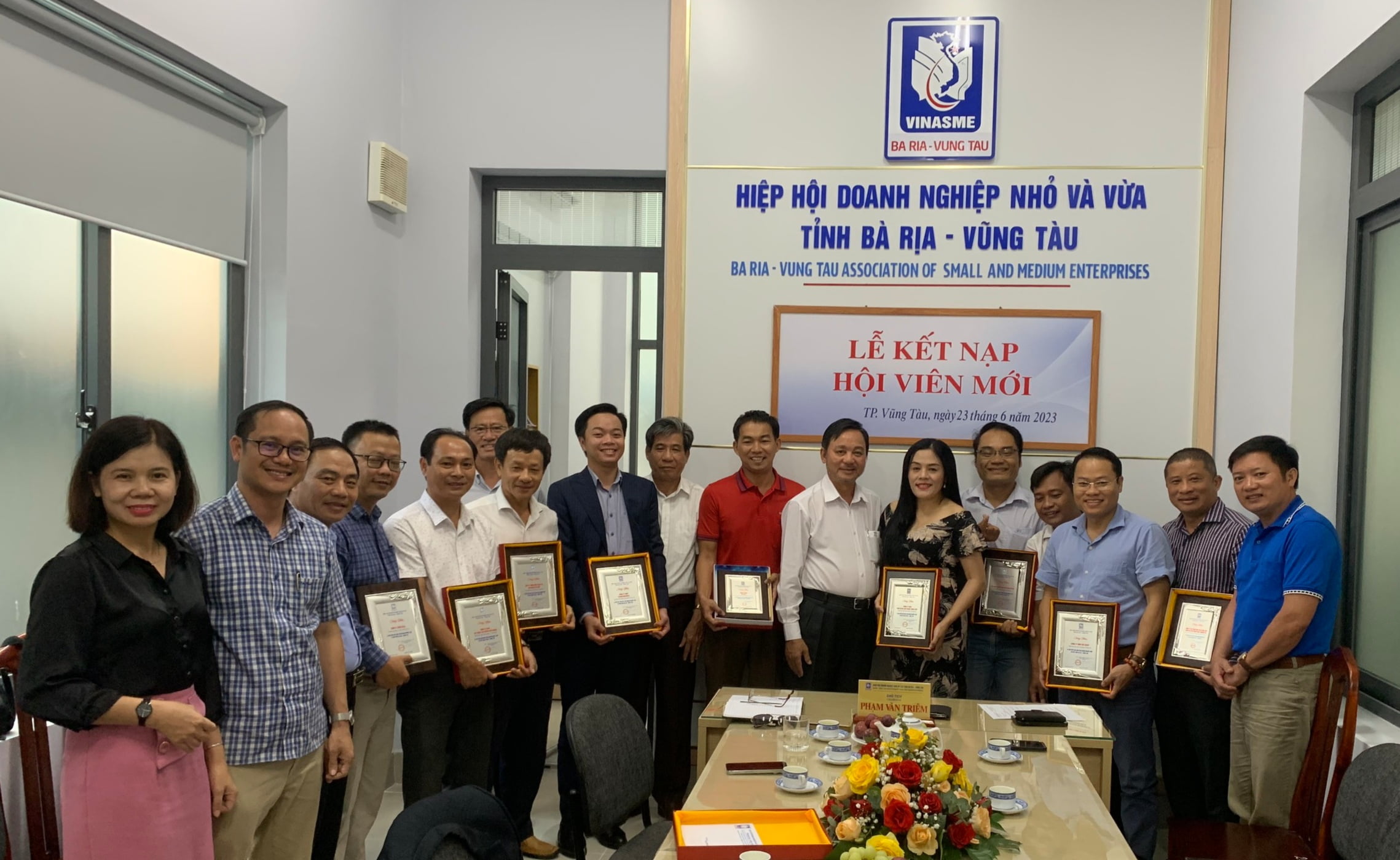 Thêm 10 doanh nghiệp xin gia nhập và được trao giấy chứng nhận Hội viên Hiệp hội doanh nghiệp nhỏ và vừa tỉnh BR-VT năm 2023. Các hội viên sẽ nhận được nhiều sự hỗ trợ từ Hiệp hội, đặc biệt là việc kết nối với chính quyền và chia sẻ cơ hội sản xuất kinh doanh.